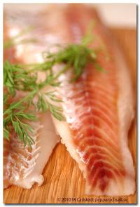Varva nu potatis och lax i formen. Strö dill och hackad lök på varje lager. Börja och avsluta med potatis. 3–4 lager brukar vara lagom.