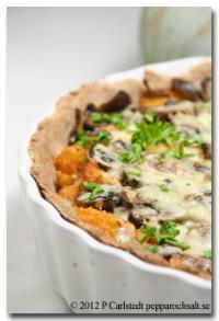 Grädda puddingen i 175 grader i cirka en timme. Servera puddingen varm med grönsallad och skirat smör.